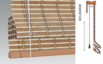 Ide o elegantný typ bambusovej roletky. Tkanina sa postupne skladá v horizontálnych pruhoch za sebou, čím vzniká pravidelné riasenie. Ovládanie je zaistené špagátom a aretáciou s brzdou, čo umožňuje nastaviť výšku stiahnutia tkaniny.